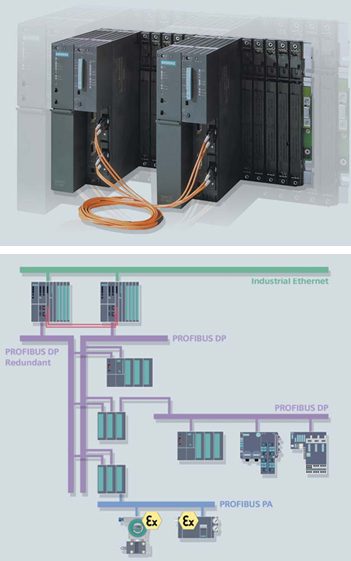 容錯性是通過二個并行的中央控制器實現(xiàn)的。它們的CPU通過光纜連接并通過冗余的ROFIBUS DP線路對冗余的I/O進行控制。除了故障CPU和PROFIBUS外,I/O自身可以冗余。當(dāng)發(fā)生錯誤或故障時進行無擾動的切換,即未受影響的熱備控制器將在中斷點繼續(xù)執(zhí)行控制而不丟失任何信息。
