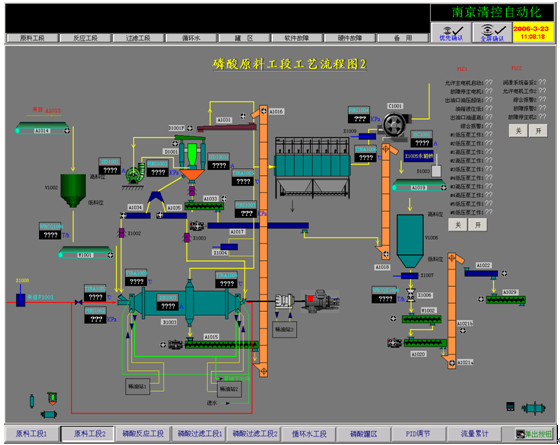 南化公司磷肥廠8.5萬噸磷酸搬遷項目DCS系統(tǒng),控制整個磷酸生產(chǎn)工藝原料、反應、過濾、循環(huán)水及罐區(qū)等五個工段上所有設備,使它們協(xié)調(diào)運行以滿足磷肥廠對磷酸生產(chǎn)需要。